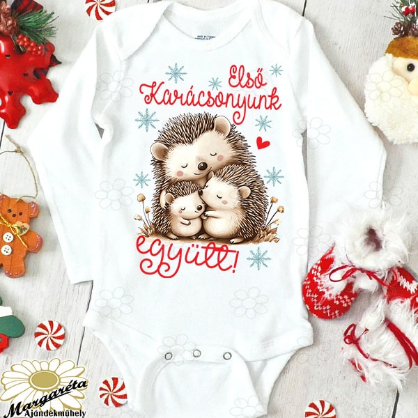 Karácsonyi body, póló első közös Karácsonyunk sünik