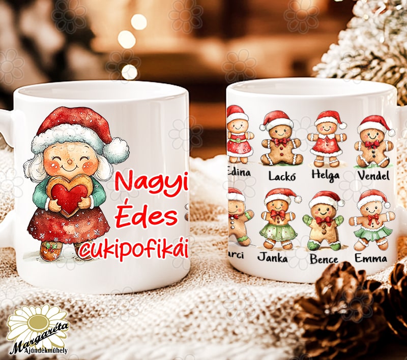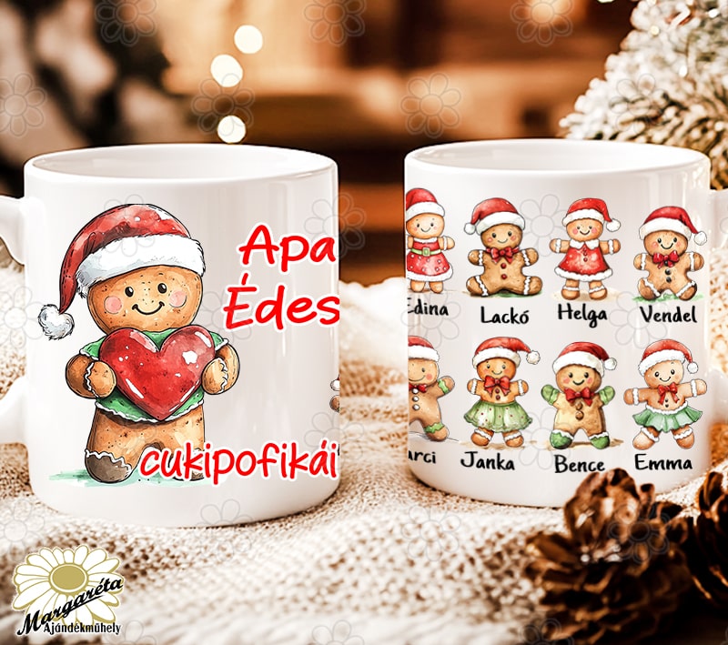 Karácsonyi bögre Apa édes cukipofikái nevekkel