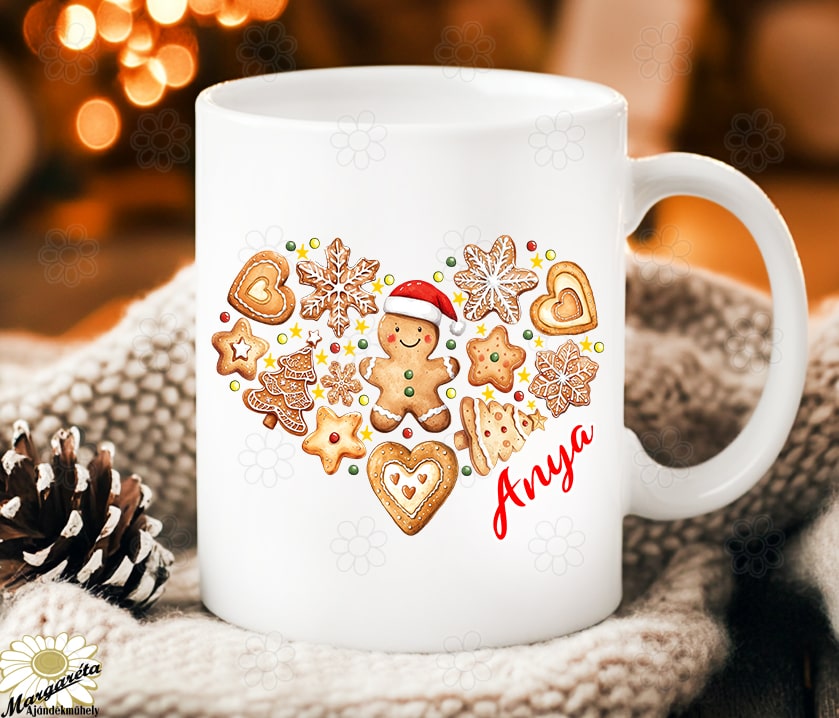 Karácsonyi bögre Mézeskalácsból szív névvel